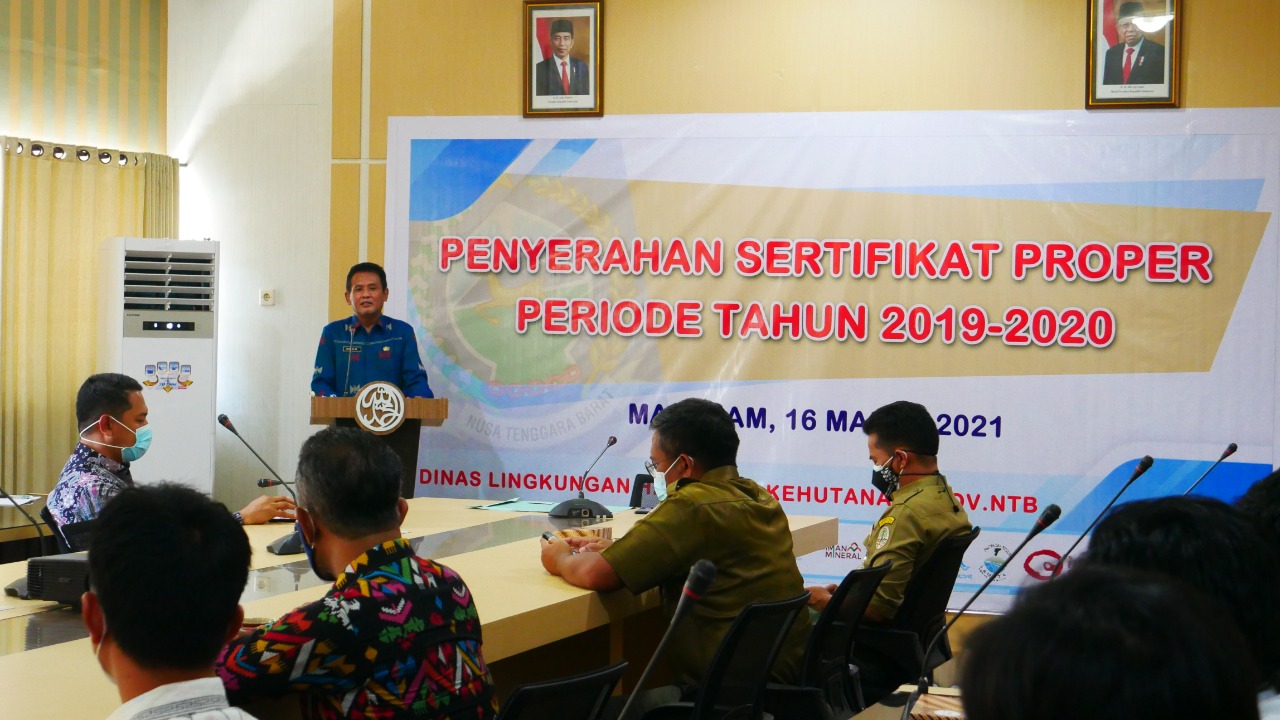 (Mataram), Selasa, 16 Maret 2021 bertempat di Aula Dinas lingkungan Hidup dan Kehutanan Provinsi NTB, 15 perusahaan menerima sertifikat Proper 2021 yang dirangkaikan dengan peringatan Hari Bakti Rimbawan 2021. Proper merupakan penilaian kinerja perusahaan yang melakukan pengelolaan lingkungan dengan indikator tertentu. Dari 17 peserta PROPER di tahun 2020, 15 perusahaan mendapat peringkat BIRU dan 2 perusahaan masih mendapatkan peringkat MERAH (sudah melaksanakan pengelolaan namun belum memenuhi ketentuan).