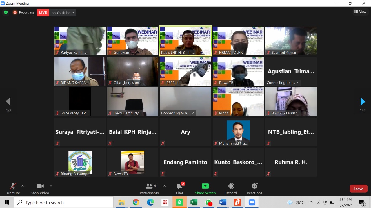 Bertepatan dengan Peringatan Hari Lingkungan Hidup sedunia yang dirayakan setiap tanggal 5 Juni, hari ini Senin (7/6) Dinas Lingkungan Hidup dan Kehutanan Provinsi NTB menggelar webinar series DLHK. Di edisi perdana Webinar series ini mengusung tema “Kenapa NTB butuh Zero…