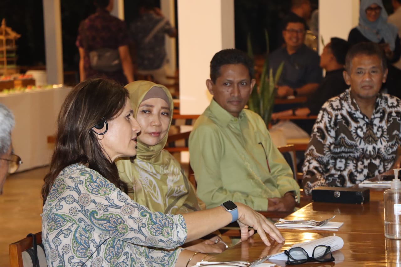 Giri Menang – Wakil Gubenur (Wagub) NTB Hj. Sitti Rohmi Djalillah didampingi Kepala Dinas Lingkungan Hidup (LHK) NTB dan Asisten I Setda NTB H. Madani Mukarom, menghadiri undangan makan malam, sambil melakukan diskusi dengan MRs Ann Jeanette Glauber, Practice Manager untuk Environment, Natural Resources and Blue Economy Global Practice The World Bank (Bank Dunia) dan Direktur Jenderal (Dirjen) Pengelolaan Hutan LEstari (PHL) Kementerian LHK RI Agus Justianto, di Hotel Sheraton tadi Malam (11/12).