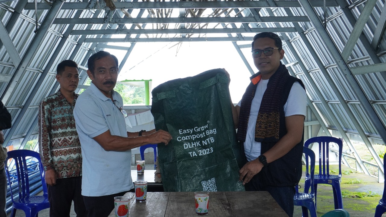 Tak lupa dalam kunjungan ini, Dinas LHK NTB menyerahkan 20 buah komposter bag, dan telur untuk stunting sebanyak 20 buah. (rf/rz)
