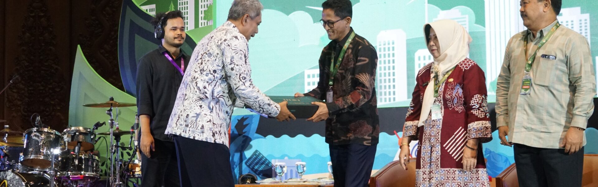 Dirjen Pengendalian Pencemaran dan Kerusakan Lingkungan Kemen LHK menyerahkan hadiah bagi Provinsi dan Kab/kota terbaik Kinerja Pengelolaan Lingkungan Hidup 2023 di Rapat Kerja Teknis (Rakernis) Nasional di Manggala Wanabakti Jakarta, 24 April 2024