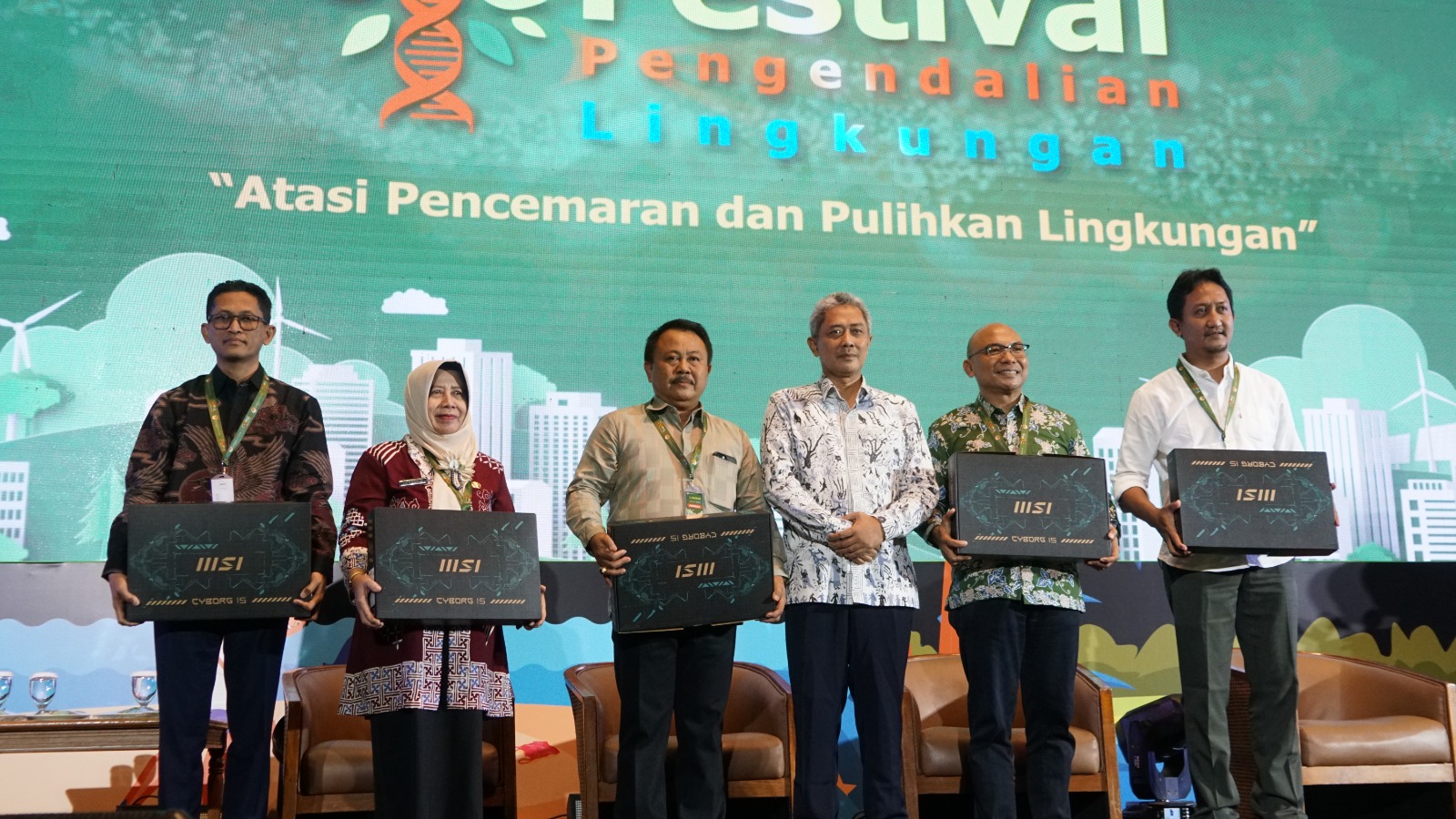 Pada Rapat Kerja Teknis Pengendalian Pencemaran dan Festival Pengendalian Pencemaran Kemen LHK diserahkan hadiah oleh Dirjen berupa satu perangkat komputer untuk spesifikasi Geografical information System (GIS).